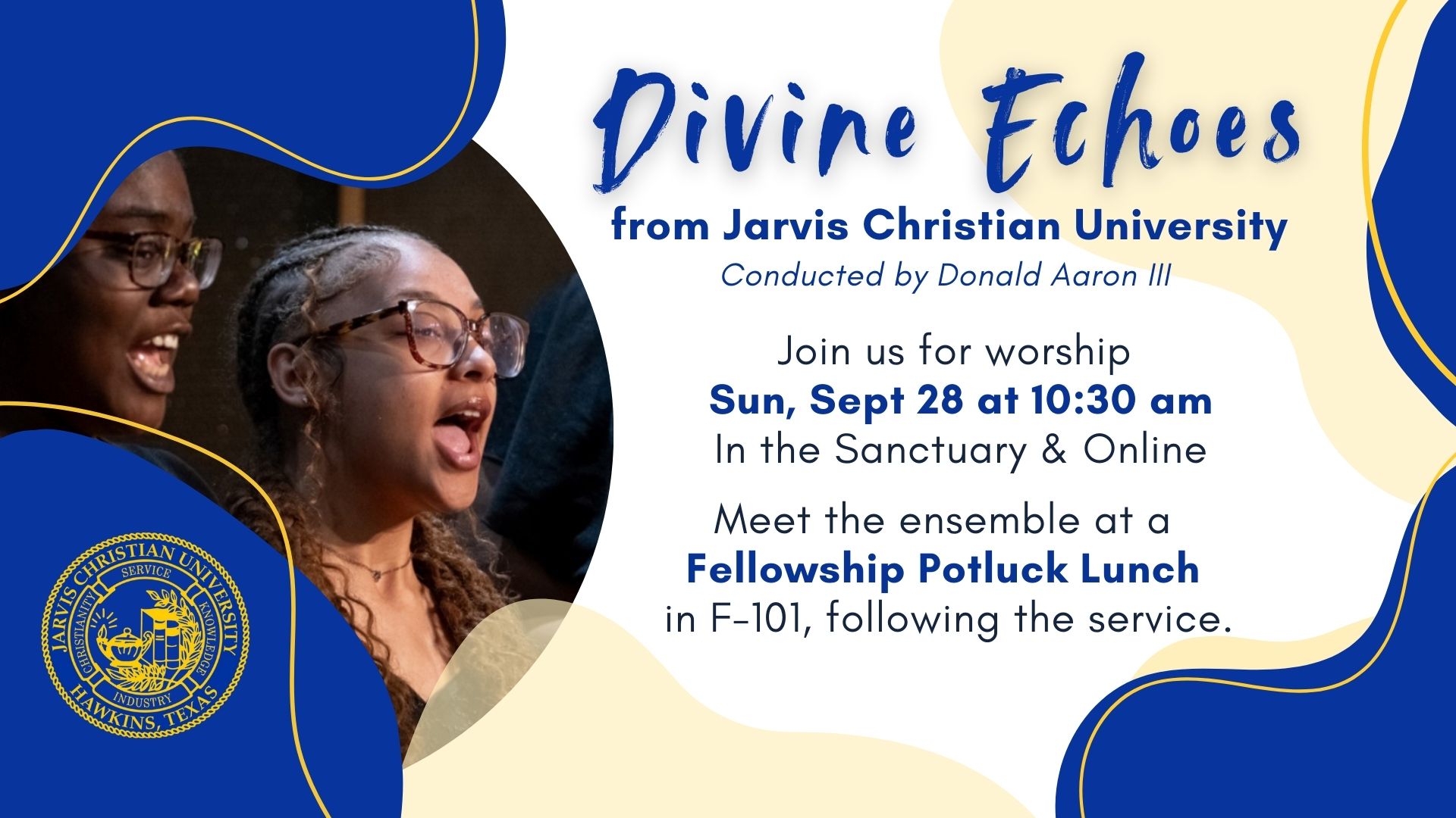 On Sunday, September 28th our friends from Jarvis Christian University will be joining us for a potluck lunch in Fellowship Hall. The church will provide chicken. Please bring a favorite side dish, vegetable, salad or dessert to share.