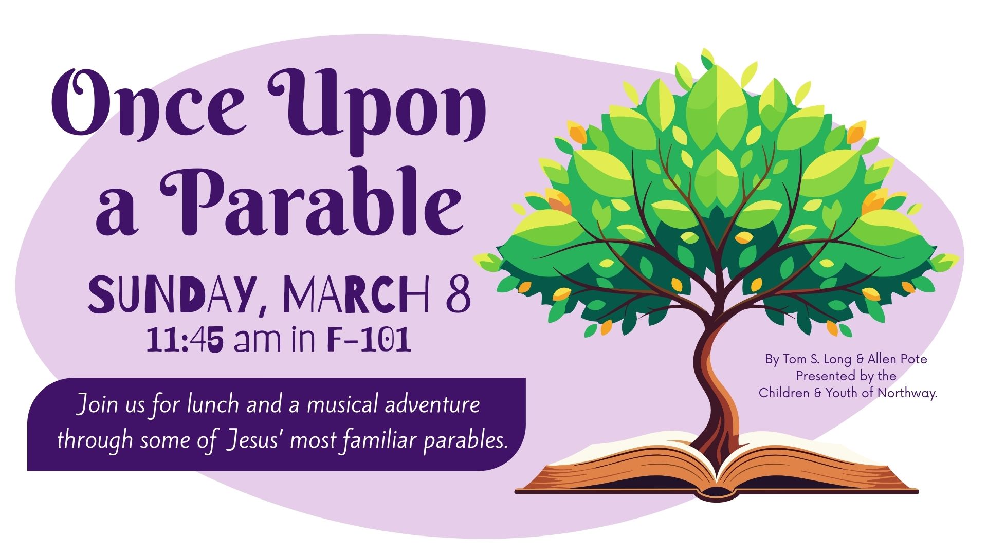 Following the worship service on Sunday, March 8, you are invited to join us for lunch and a musical adventure through some of Jesus’ most familiar parables. The children and youth of Northway are excited to share with you what they’ve been working on during their music time!